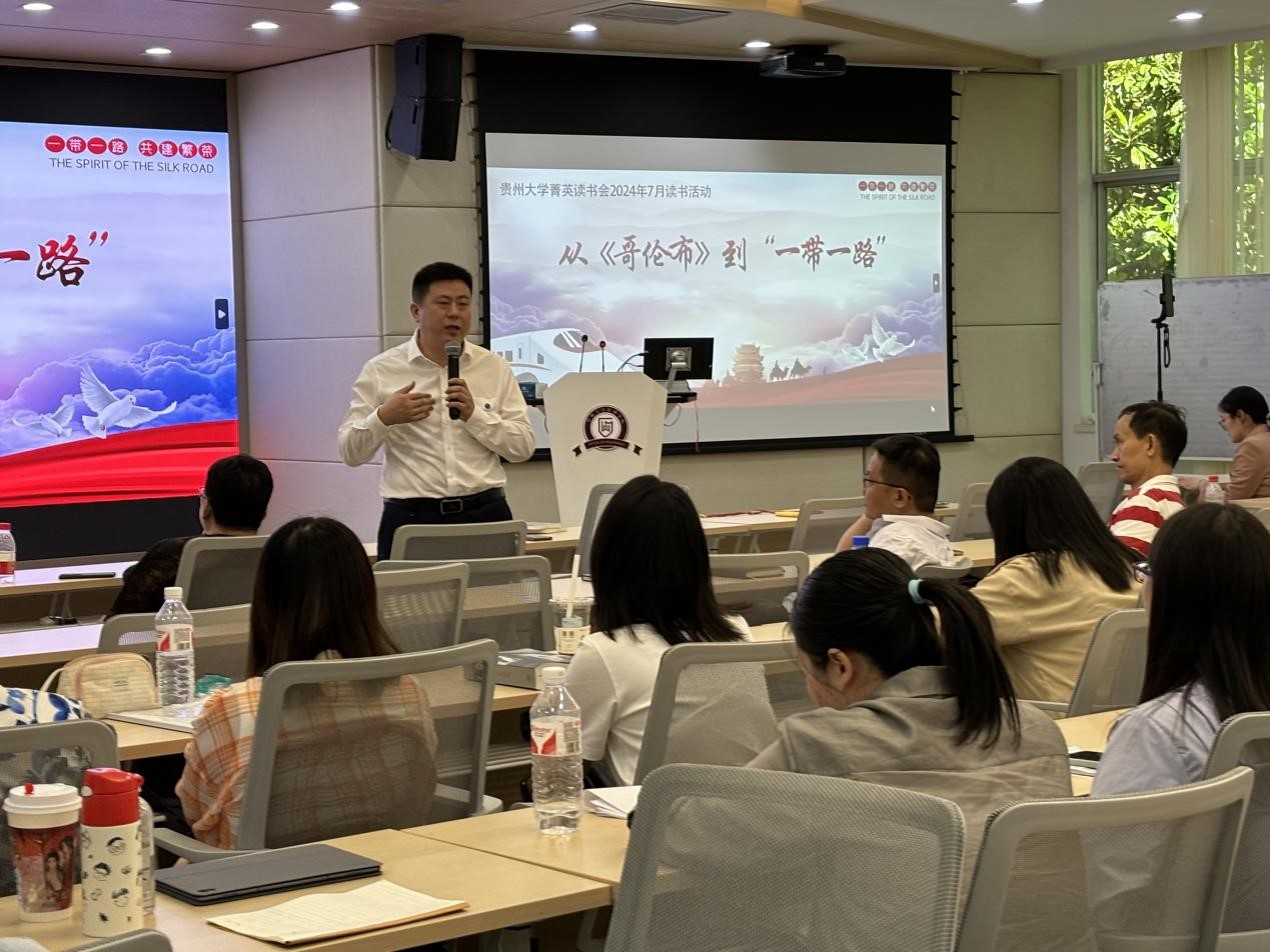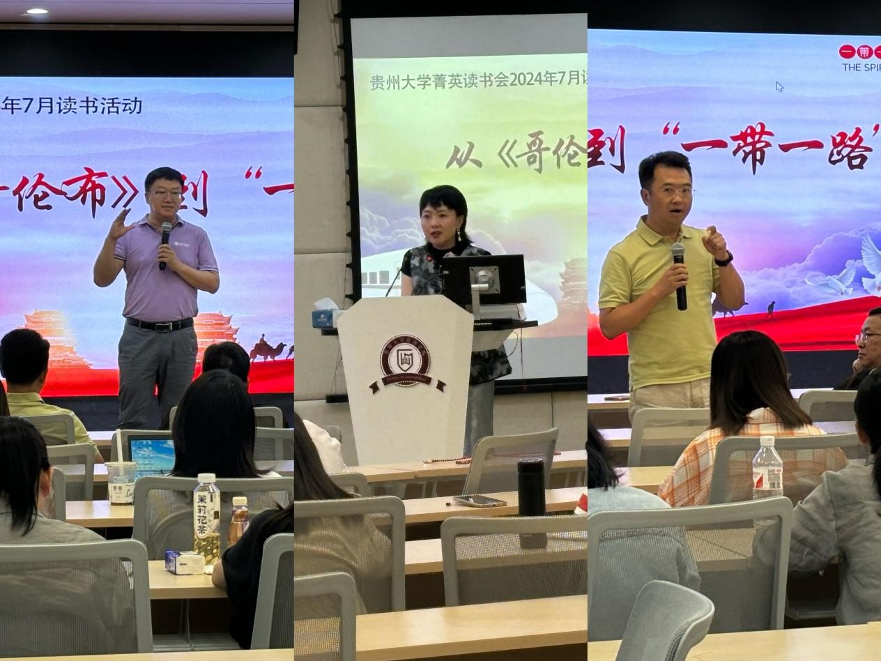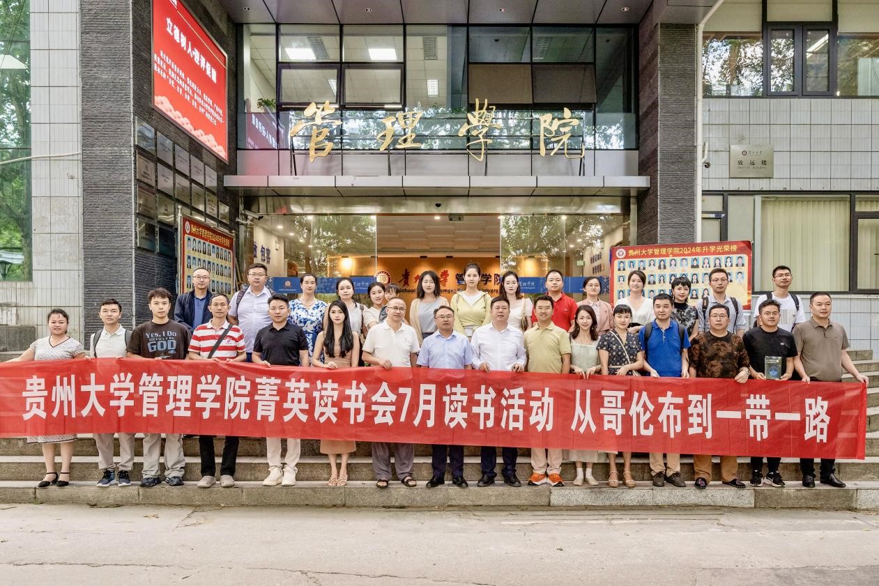 202476日,贵州大学管理学(EMBA&MBA&EDP)菁英读书会在管理学院三楼报告厅举办了主题为从《哥伦布》到“一带一路”的读书活动。本期读书由EMBA校友罗纲举(贵阳方舟科技有限公司总经理、读书会荣誉会长)分享。活动以现场分享、互动提问的方式让来自读书会和学院在读的MBA40多名校友、同学参与到本次活动当中。贵州大学党委委员、leyu院长李烨出席了活动。活动主持人为读书会会长吴迪、读书会联合会长陈隽宁。