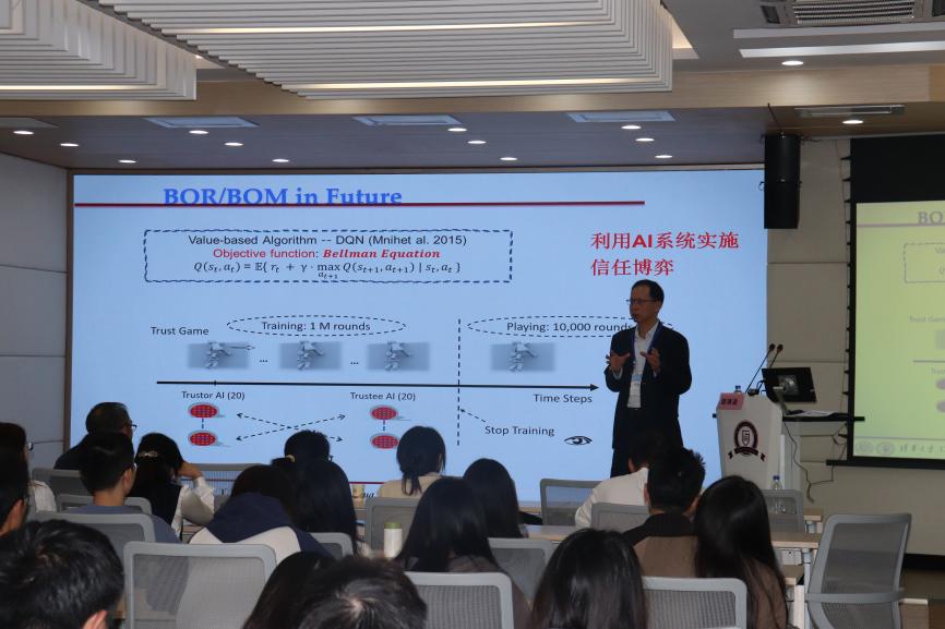 最后,赵教授讨论了行为科学与人工智能(AI)结合的可能性,探讨了如何利用AI来模拟和理解人类行为。他指出,随着AI技术的迅猛发展,行为科学的原理可以与机器学习算法相结合,从而更准确地预测和分析人类行为模式,进而为管理决策提供支持。这部分内容也引起了与会者的浓厚兴趣。