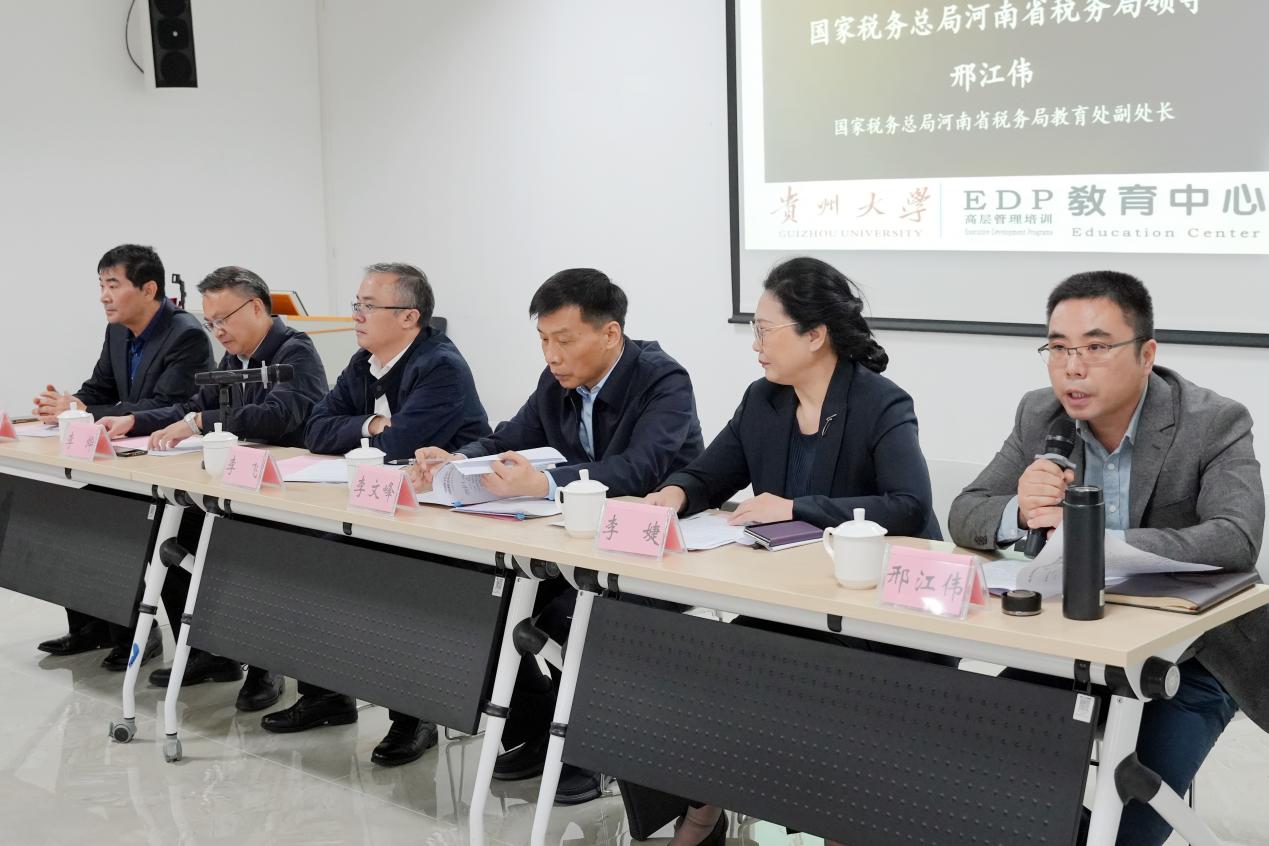 河南省税务局党委委员、总会计师李文峰,河南省税务局第四税务分局局长李婕,河南省税务局教育处副处长邢江伟,贵州大学党委常委、副校长李飞,贵州大学党委委员、管理学院院长、副书记李烨,leyuEDP教育中心主任张勇出席了本次开班仪式。