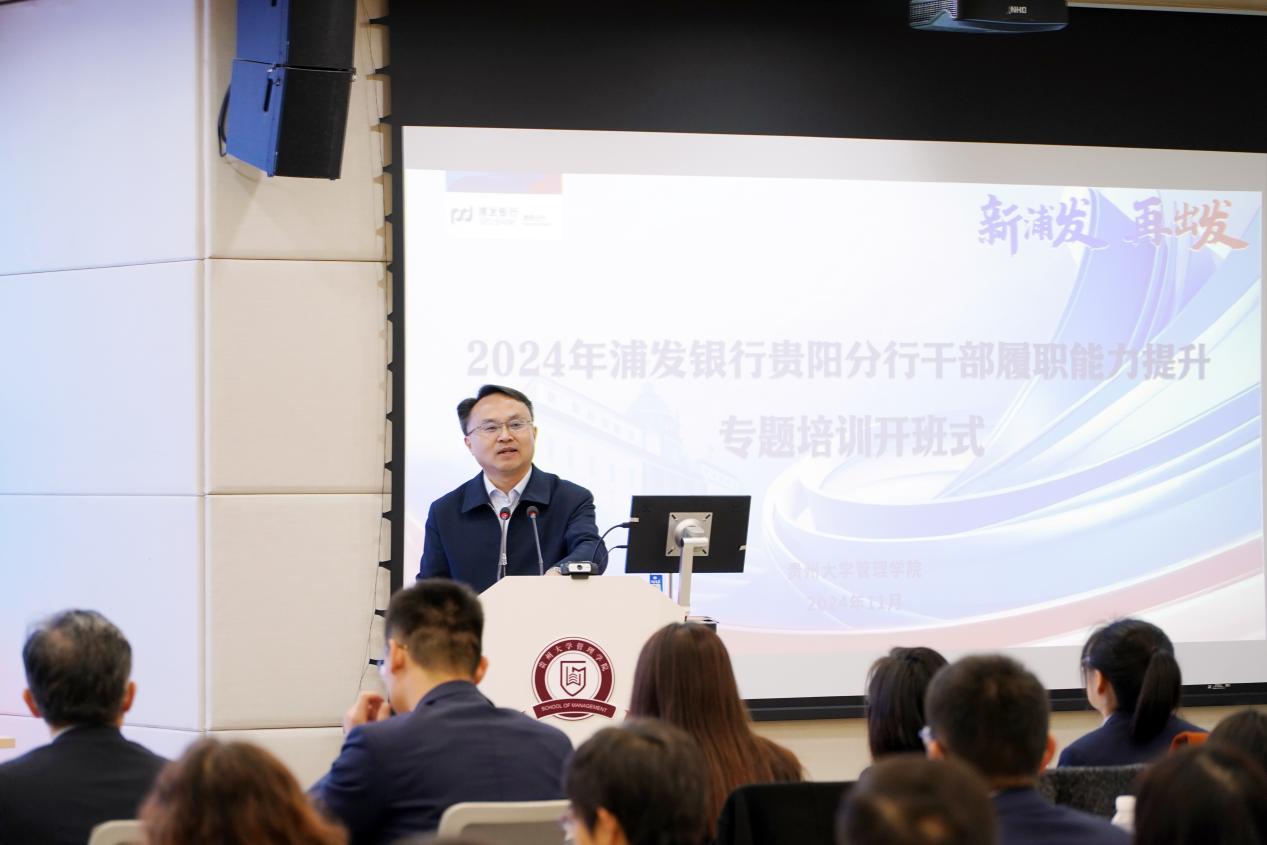 贵州大学党委委员管理学院院长李烨在本次开班式致辞中提到:习近平总书记强调金融是国家重要核心竞争力,金融干部队伍建设对于维护金融安全稳定等诸多事务至关重要,这些理念间接凸显了对包括银行干部培训在内金融干部教育提升理念重要性。加强包括银行干部培训在内金融干部教育提升工作,是提升我国金融业整体竞争力维护金融安全稳定重要举措之一。这一理念实践将有助于培养更多高素质专业化金融人才,为推动我国经济高质量发展提供有力支撑。