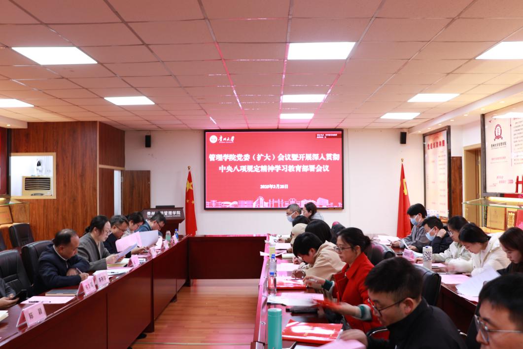 3月28日下午,管理学院召开党委(扩大)会议,研究部署在全院开展深入贯彻中央八项规定精神学习教育。学院党委书记王迪主持会议并讲话。学院党委班子成员,党委委员、纪委委员,院党政办公室,党支部书记、副书记参会。
