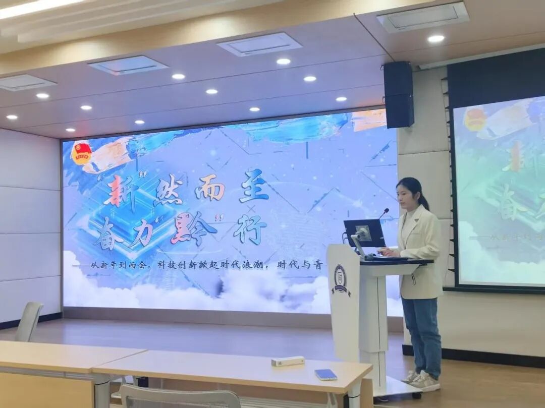 宣讲团成员周心怡主要围绕“学习两会精神”主题,详细阐述两会精神的丰富内涵,包括两会对于未来发展的规划和展望,分析两会精神对大学生成长成才的重要指导意义,鼓励同学们紧跟时代步伐,勇担时代责任,为实现中华民族伟大复兴的中国梦贡献青春力量。