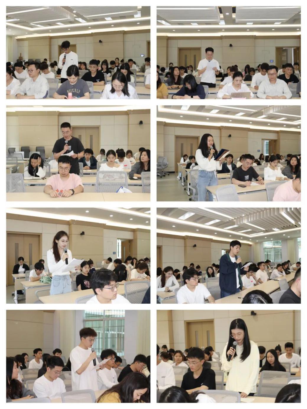 其次由八位学生代表进行交流发言,结合自身情况分别发表个人的学习感想体会。