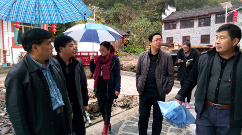“中心”兼职研究员、贵州省政府研究室原主任王礼全研究员(左一)在黎平进行“对口帮扶贵州工作规划”编制调研