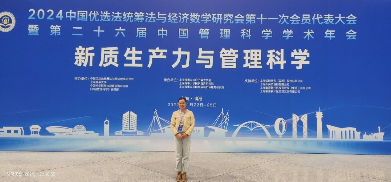 2024年11月22日-25日,贵州大学数字化转型与治理协同创新实验室成员、管理科学与工程专业在读博士研究生姚丽参加了在上海举办的中国优选法统筹法与经济数学研究会第11次会员代表大会暨第26届中国管理科学学术年会。本次会议以“新质生产力与管理科学”为主题,旨在贯彻落实党的二十届三中全会精神,围绕习近平总书记关于以科技创新为核心的全面创新思想,聚焦学术引领,服务国家创新驱动发展战略,展示管理科学领域的最新成果和进展,搭建高端学术交流平台。