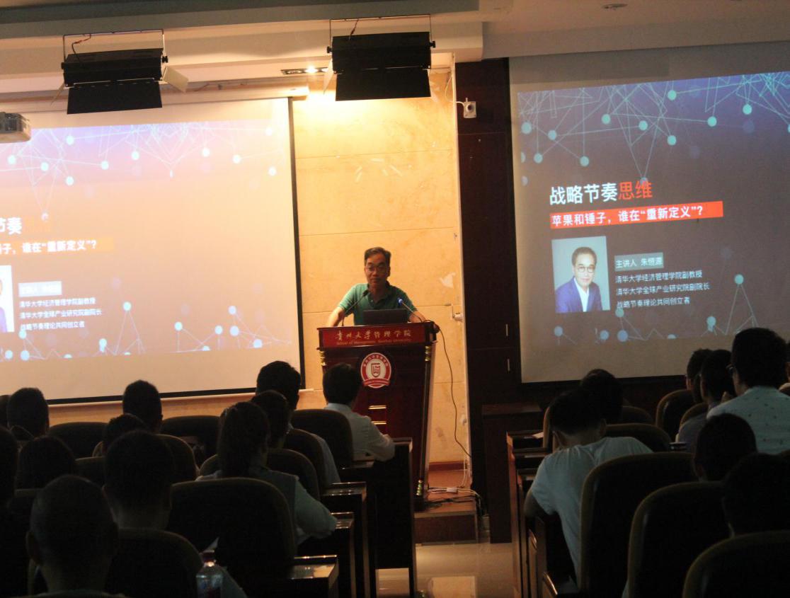 2018年5月27日下午三点半,清华大学全球产业研究院副院长朱恒源博士一行做客leyuMBA管理知识讲堂,以“在动荡的商业世界超越竞争”为题,在管理学院报告厅与百余位MBA同学分享了企业应该如何通过管理战略节奏获取与之相匹配的竞争优势等管理问题。管理学院院长李烨教授主持了本次讲座。