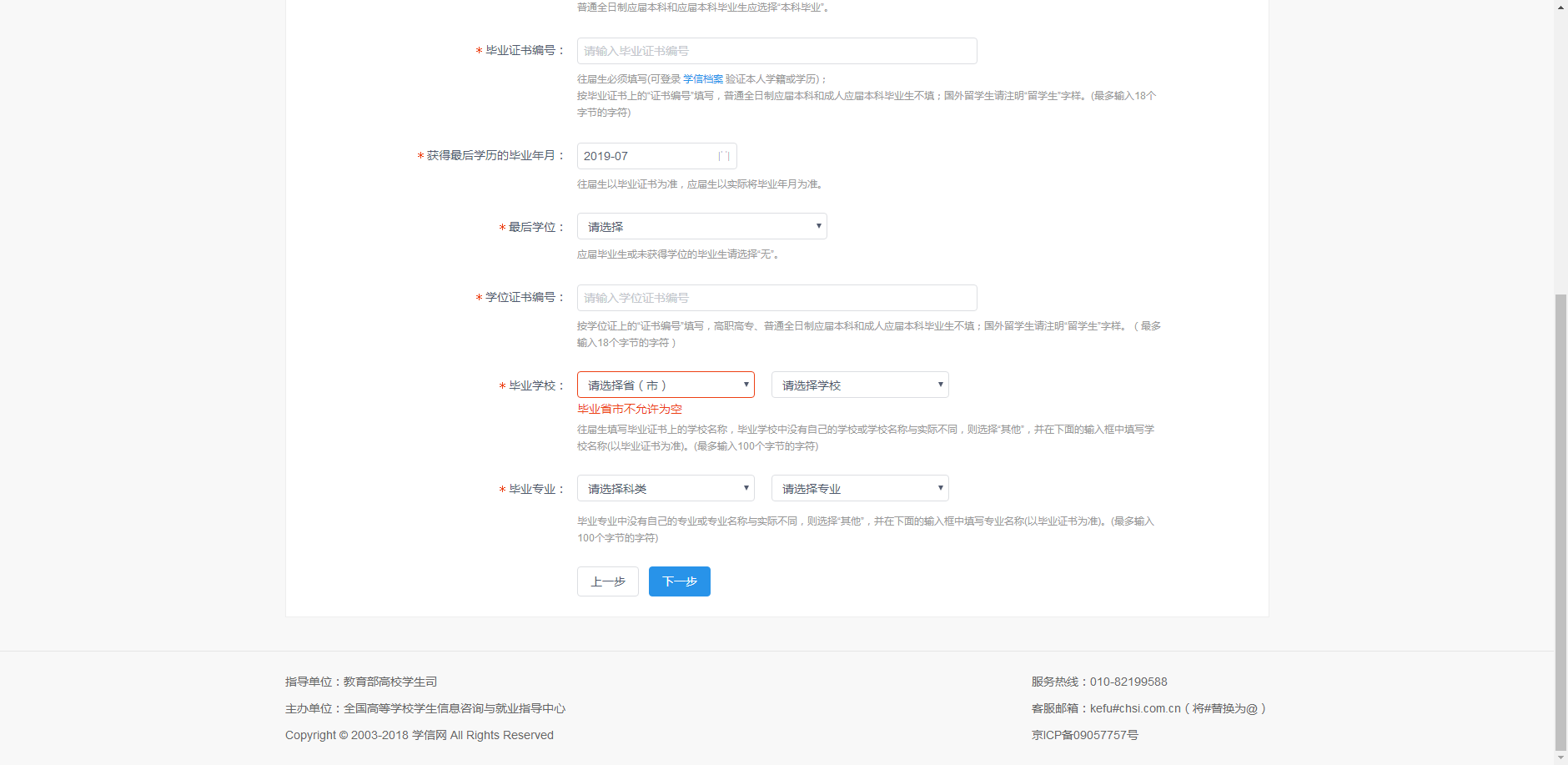 【毕业时间】:写错时间,可能会导致学籍认证不通过!
