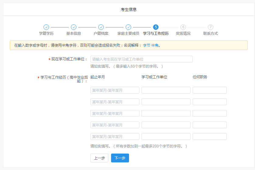 2.顺次填写学籍学历→基本信息→户籍档案→家庭主要成员→学习与工作经历→奖惩情况→联系方式