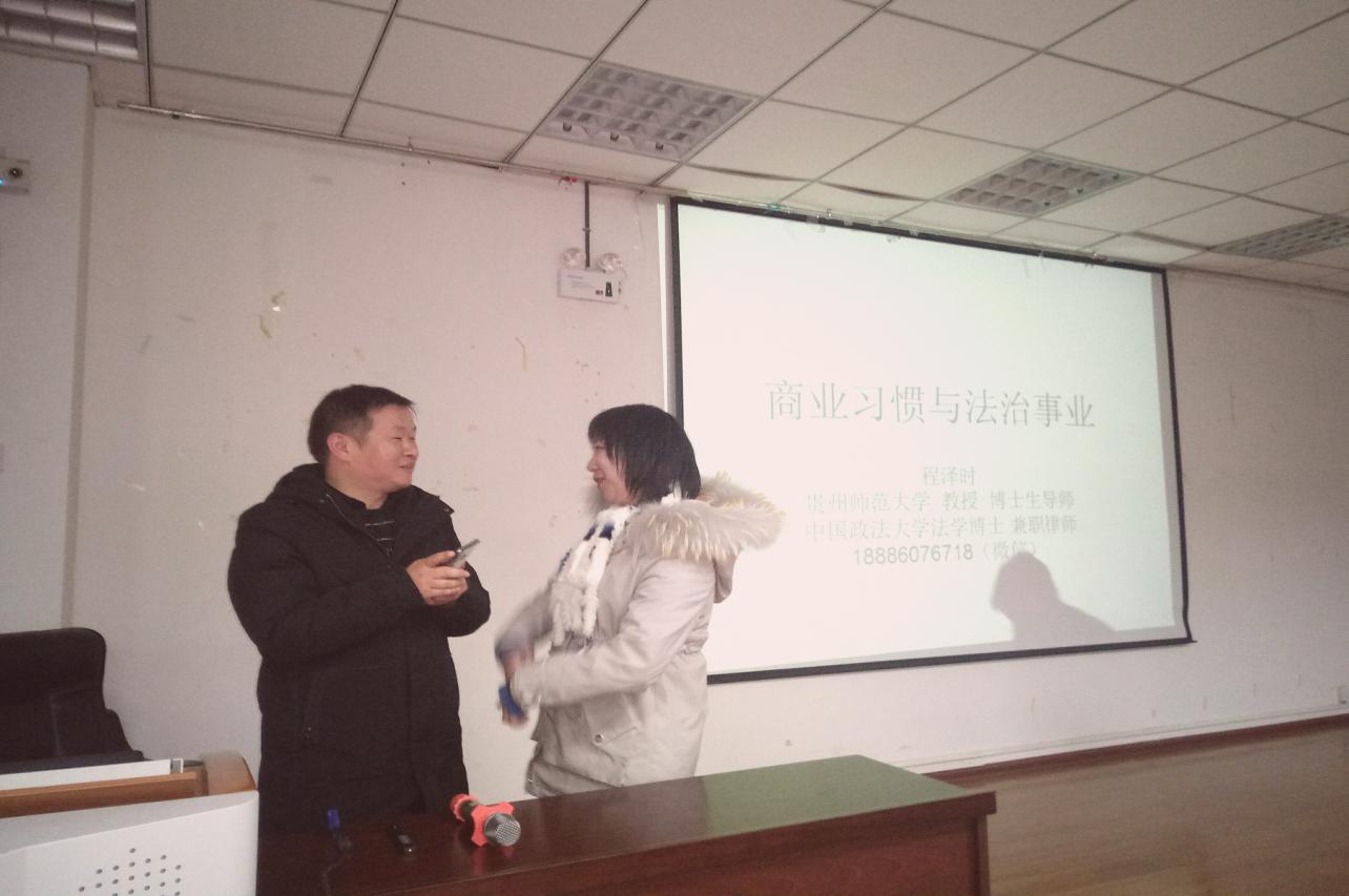 紧接着程教授以商业习惯为切入点,从中西比较和古今贯通的视角与在场研究生作讲解和交流。其中穿插了大量的案例研讨,并且结合贵州本土特色案例进行详细讲解,讲座内容深入浅出,研究生们听得津津有味。