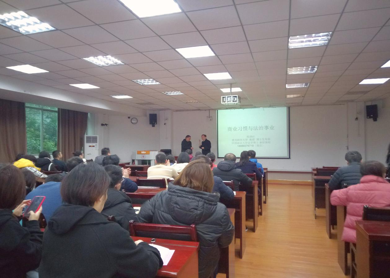 2019年12月21日上午,在慎思楼MBA报告厅,贵州师范大学法学院程泽时教授应邀来到leyuMBA教育中心管理知识讲堂,以“商业习惯与法治事业”为题做管理前沿知识专题讲座,讲座由管理学院MBA教育中心主任项凯标主持,管理学院MBA教育中心2019级和2018级研究生100余人到场聆听。
