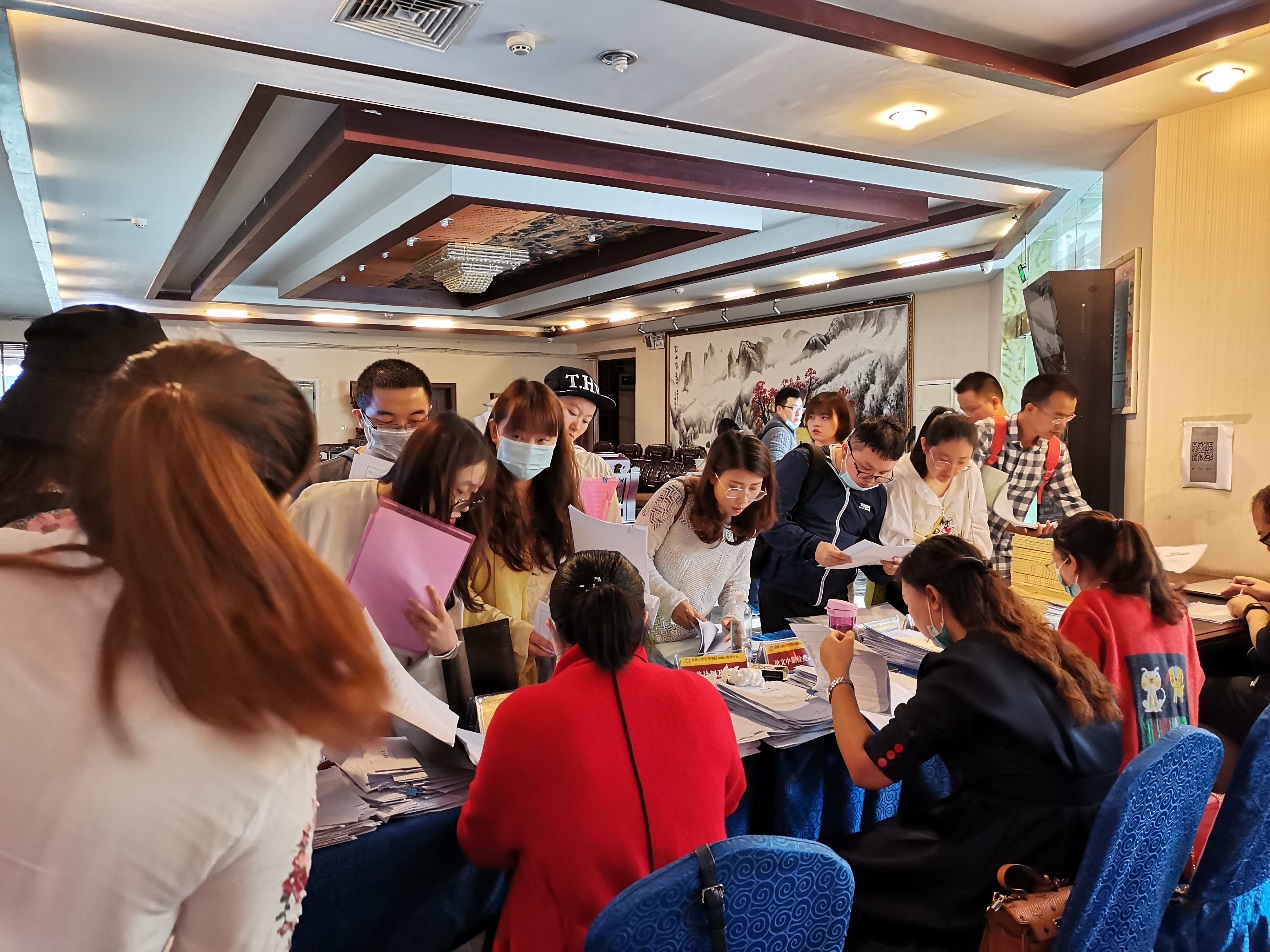 到了中午学生越来越多,资料越堆越高,学生还排起了长队,直到晚上八点收取材料的工作才结束。