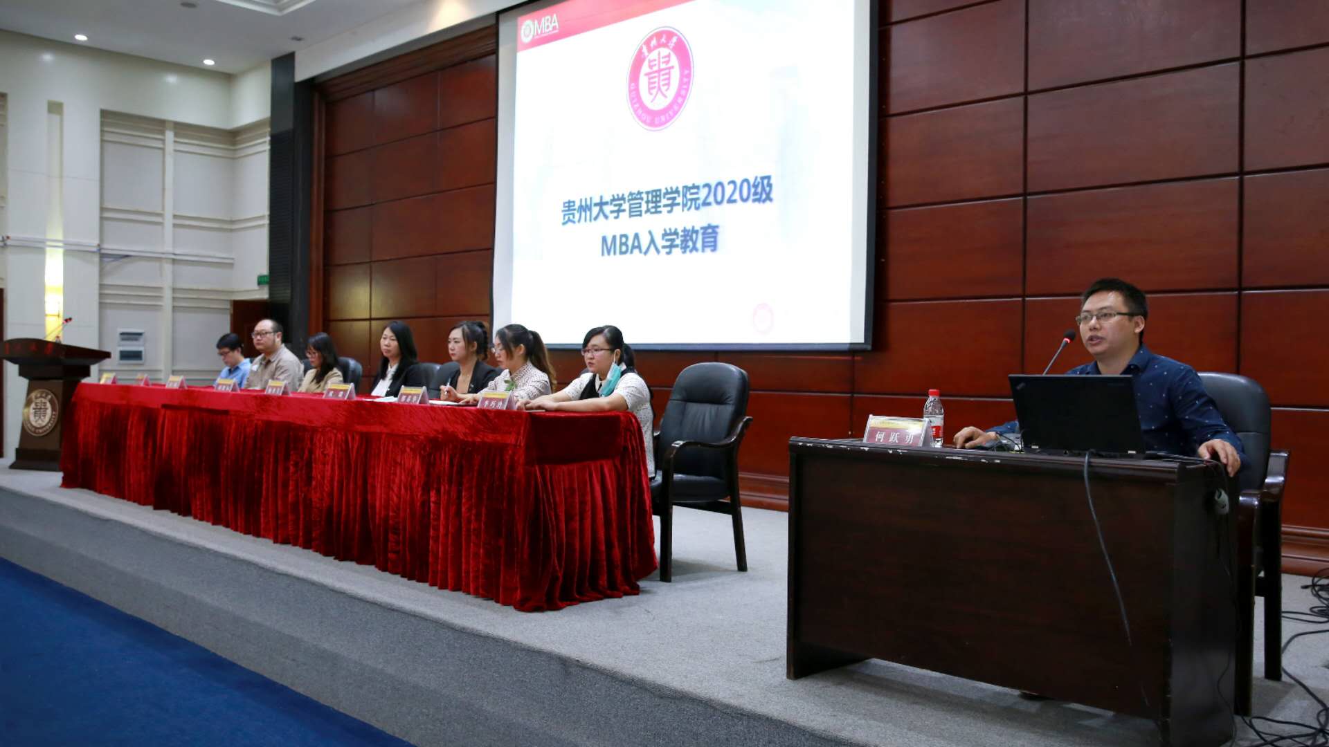 贵州大学研究生院院长杜滨教授、leyu党委书记王秀峰教授、leyu院长李烨教授、leyu副院长王婷教授、leyu副院长宋山梅教授、leyu副院长周莉莉教授、贵州大学管理学院MBA导师代表张莉副教授、管理学院各科室及部门负责人、系主任,各班班主任老师以及MBA和EMBA全体工作人员、300余名MBA新生、100余名EMBA及管理学院全日制研究新生参加了此次开学典礼。