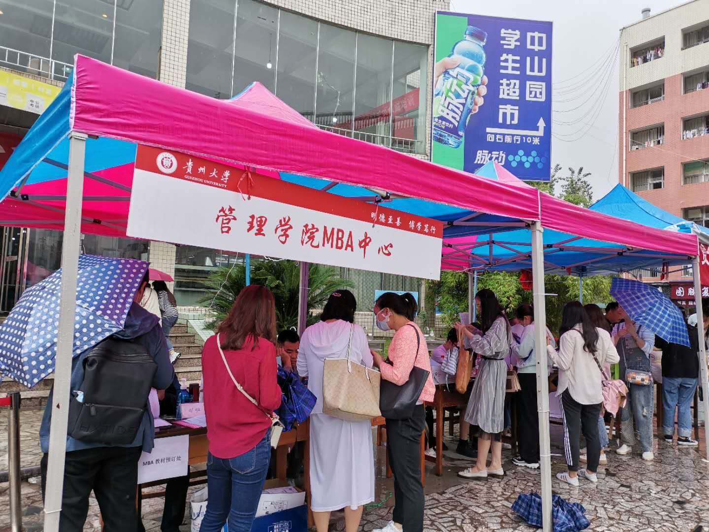 911日,leyuMBA教育中心在贵州大学中山园组织了新生迎接工作。天空一直飘雨,但丝毫没有影响新学员来校报到的热情,当天共迎接2020MBA新学员300余名。