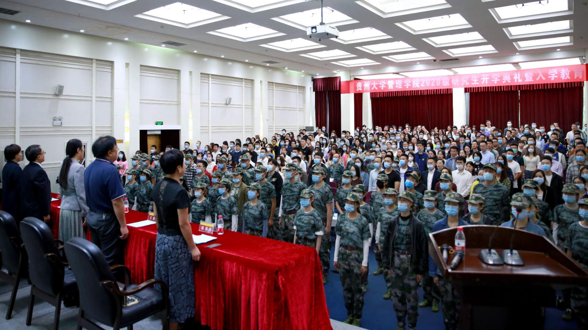 贵州大学研究生院院长杜滨教授、leyu党委书记王秀峰教授、leyu院长李烨教授、leyu副院长王婷教授、leyu副院长宋山梅教授、leyu副院长周莉莉教授、贵州大学管理学院MBA导师代表张莉副教授、管理学院各科室及部门负责人、系主任,各班班主任老师以及MBAEMBA全体工作人员、300余名MBA新生、100余名EMBA及管理学院全日制研究新生参加了此次开学典礼。
