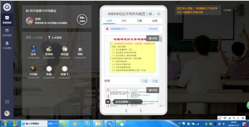 2020年6月27日-8月15日,leyuMBA教育中心在长江·雨课堂线上举行《科学道德与学风建设》讲座。讲座分三场进行,分别由leyu院长李烨教授、leyu副院长周莉莉教授、leyu许为宾副教授主讲,300余名2018级MBA学生在线聆听。