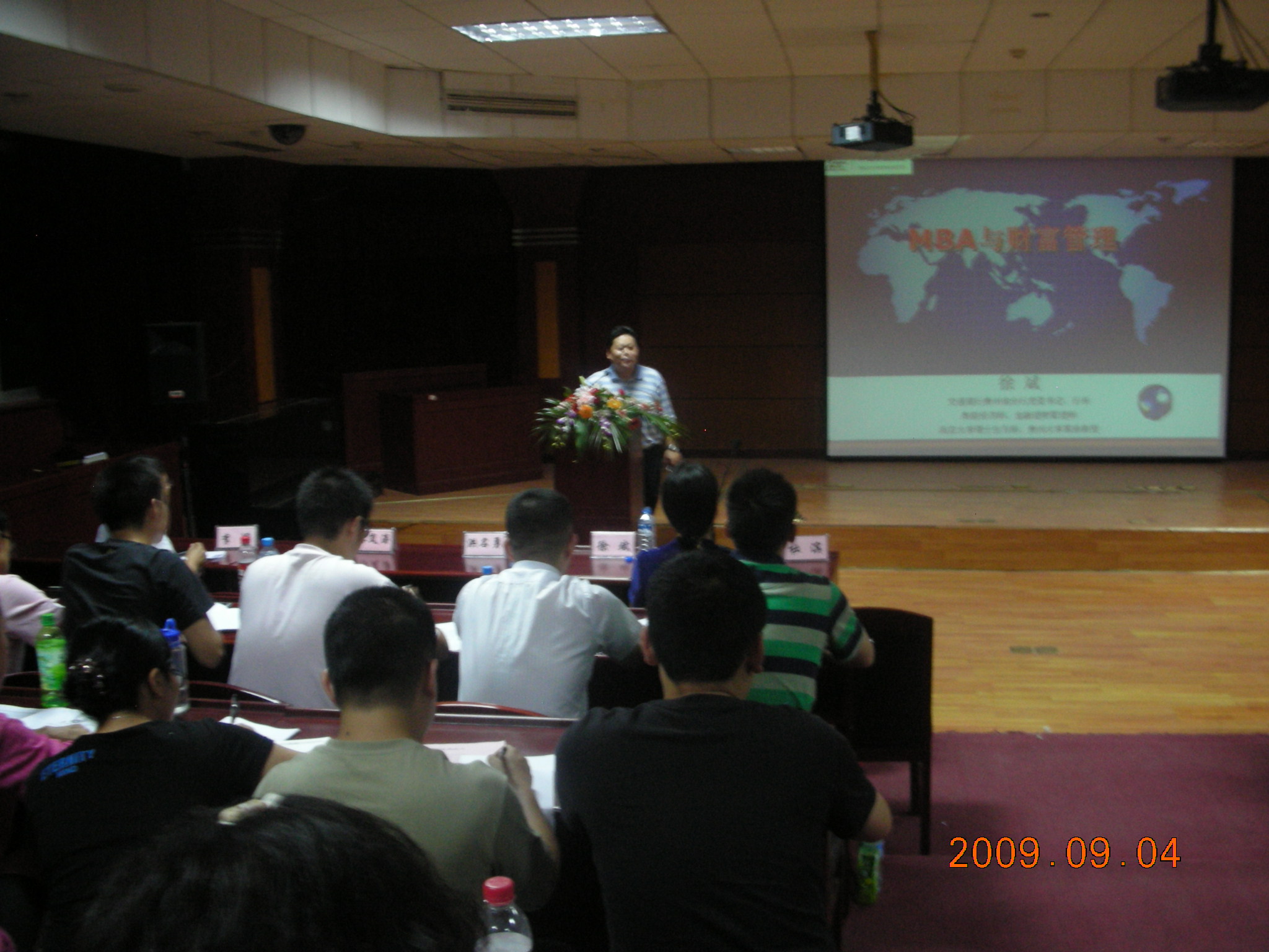 2009年9月3号09秋季MBA学员到校报到注册,9月4号下午部分学员参观了贵州大学校史馆,9月4日晚在贵州大学花溪北校区模拟法庭进行入学教育。leyu院长杜滨教授、MBA教育中心全体工作人员和09秋季MBA班的2名班主任出席09秋季MBA入学教育仪式。在入学教育仪式上,MBA教育中心主任李烨博士为一百五十余名09级秋季MBA学员介绍了贵州大学MBA教育项目的发展沿革、下一步发展思路和MBA培养流程及相关要求,并殷切希望大家协调好学习与工作、学习与家庭的关系,和谐学习、愉快学习,早日完成学业。