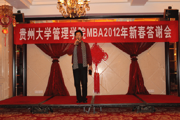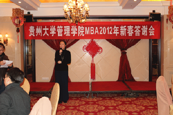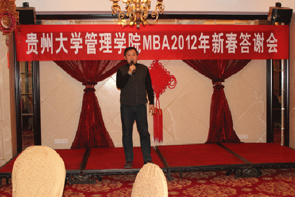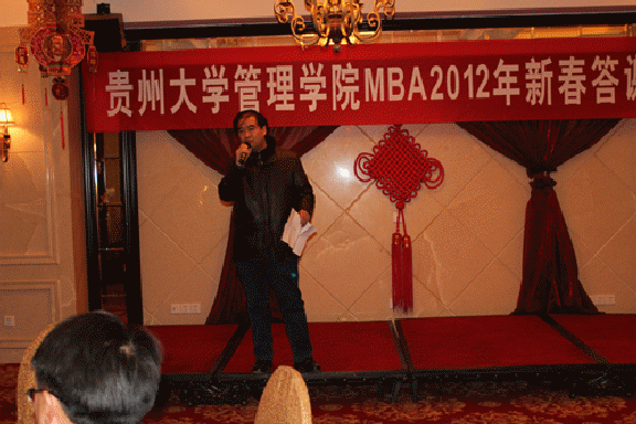 活动由管理学院副院长罗敏主持。活动开始,王校长代表贵州大学向每位来宾致词。他深有感触地说到,这次是中心年终对于各位老师、各位同学的一次答谢活动,中心的发展与大家的支持和帮助是密不可分的。贵大管理学院MBA教育中心的发展历程,每一步都与大家分不开,每当需要大家的时候,都得到了大家的热烈响应。对此,我代表学校表示衷心的感谢。