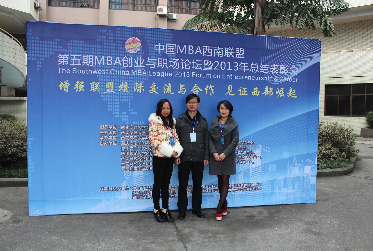 2013年12月21至22日,来自川渝云黔西南四省十八座高等学府的MBA学子齐聚西南交通大学,由中国MBA西南联盟、西南交通大学经济管理学院主办,西南交通大学MBA联合会承办的中国MBA西南联盟第五期MBA创业与职场论坛暨2013年总结表彰会在此成功举办。leyu第五届MBA联合会代表团的MBA中心学生工作部王军老师,联合会副主席秦平、秘书长任韵、文体部部长范秋月等同学参加了此次会议。