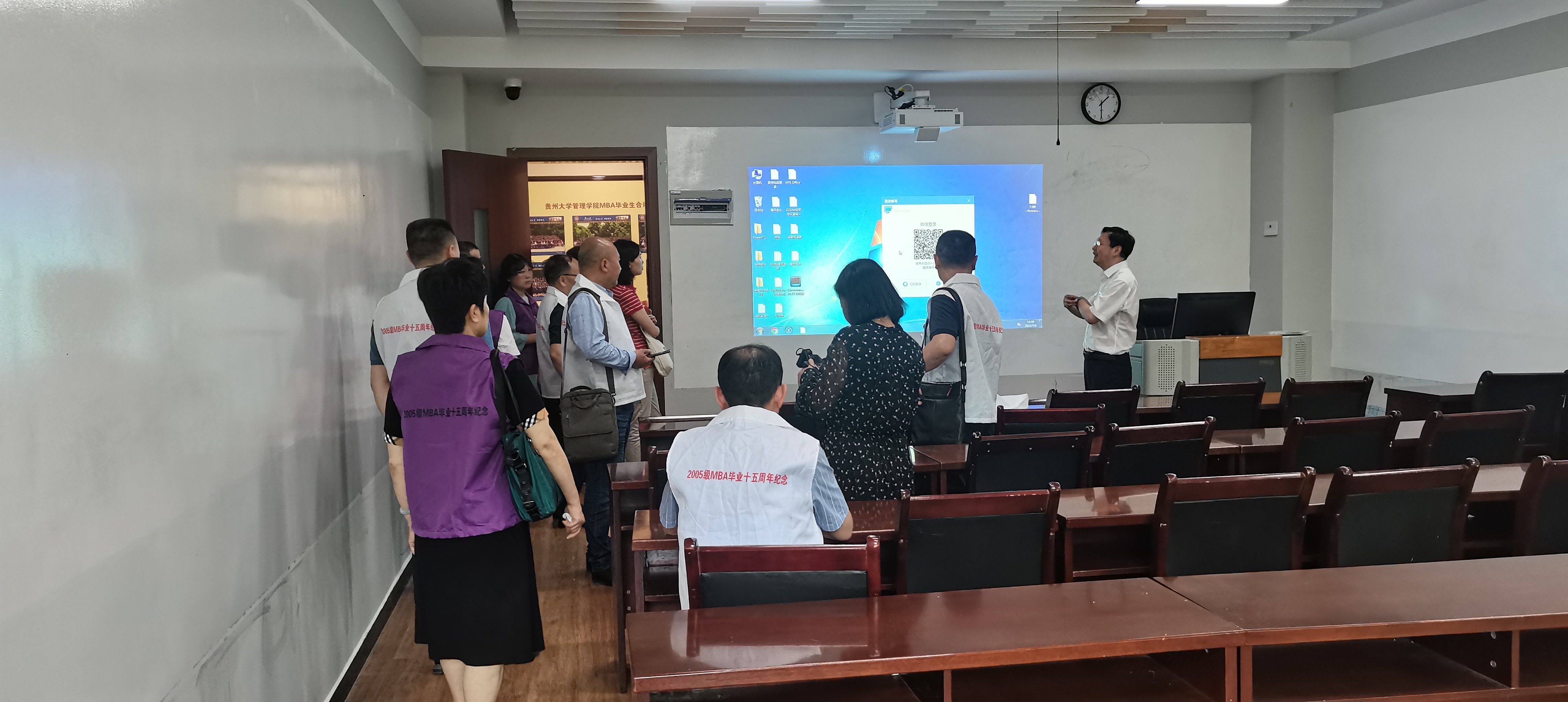 202279日,在贵州大学建校120周年暨管理学院MBA教育中心成立20周年之际,MBA中心迎来了2005MBA校友一行40余人回家探访。中心全体工作人员热情地接待了他们,并在中心主任项凯标老师和副主任何跃勇老师及他们当年的班主任周老师的带领下走访参观了MBA教育中心的办公区和每一间教室。两位主任详细地向校友们介绍了中心这十多年来的发展历程和现状。