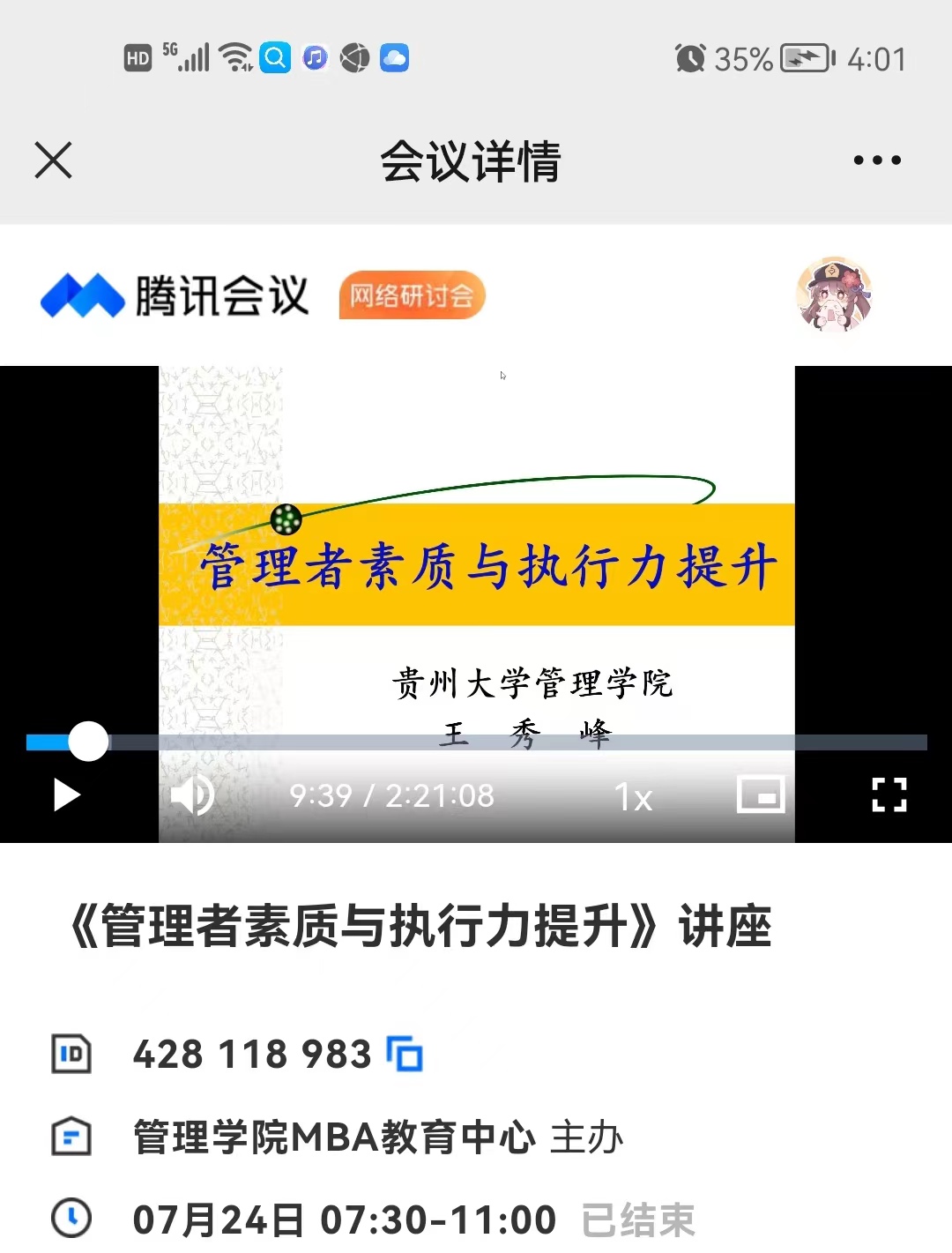 2022年7月24日,管理学院MBA教育中心邀请管理学院党委书记王秀峰教授为20级21级MBA研究生成功举办了题为《管理者素质与执行力提升》的管理知识讲座。讲座采取腾讯会议的方式进行,20级21级四百余名研究生聆听了此讲座。