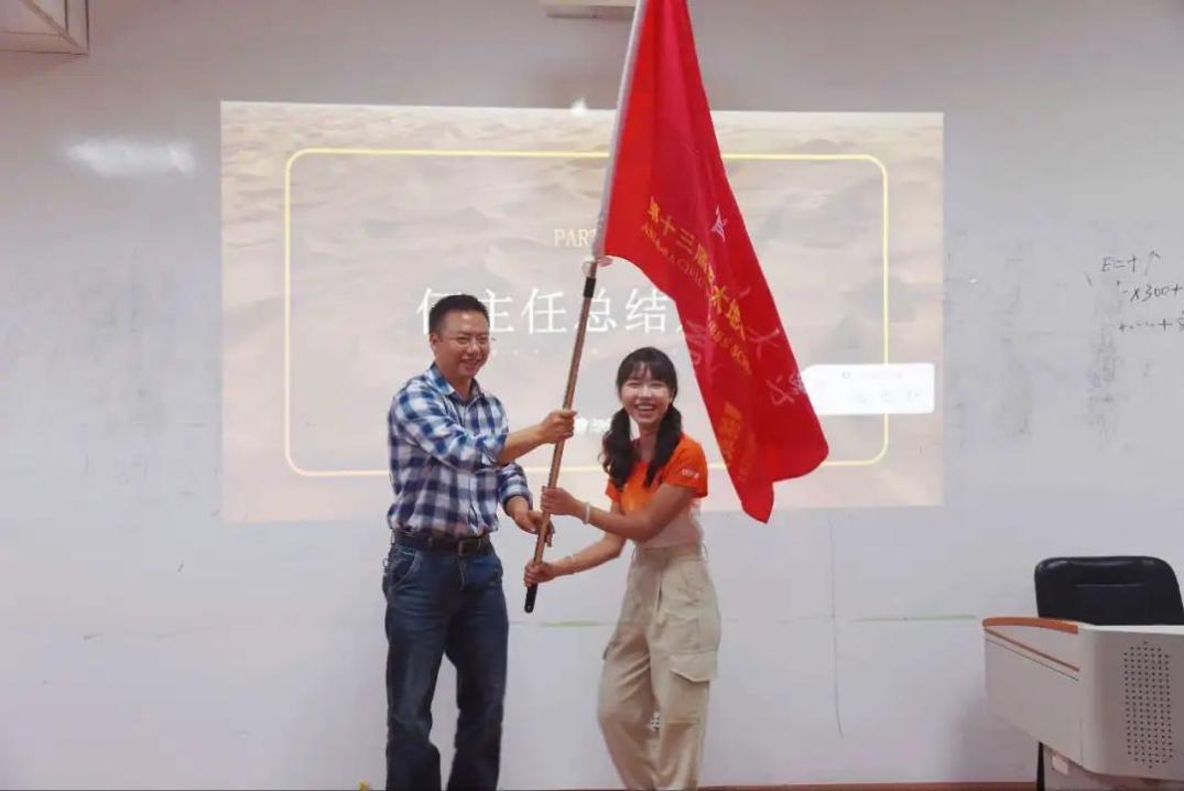 leyuMBA教育中心常务副主任何跃勇与沙13领队刘紫淳完成了授旗仪式,刘紫淳表示我们一定全力以赴,安全出发、安全回来。