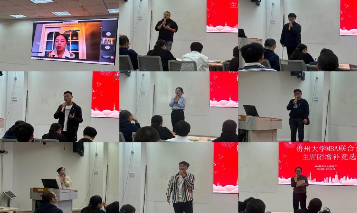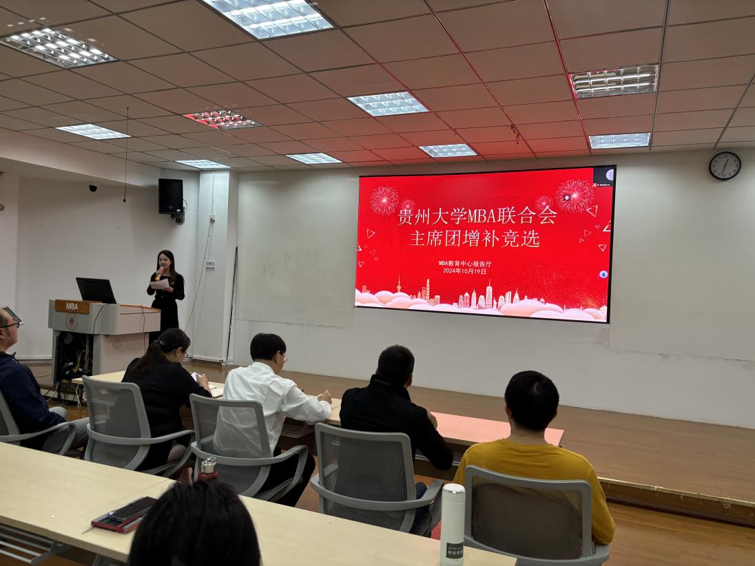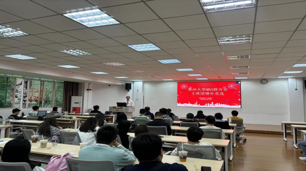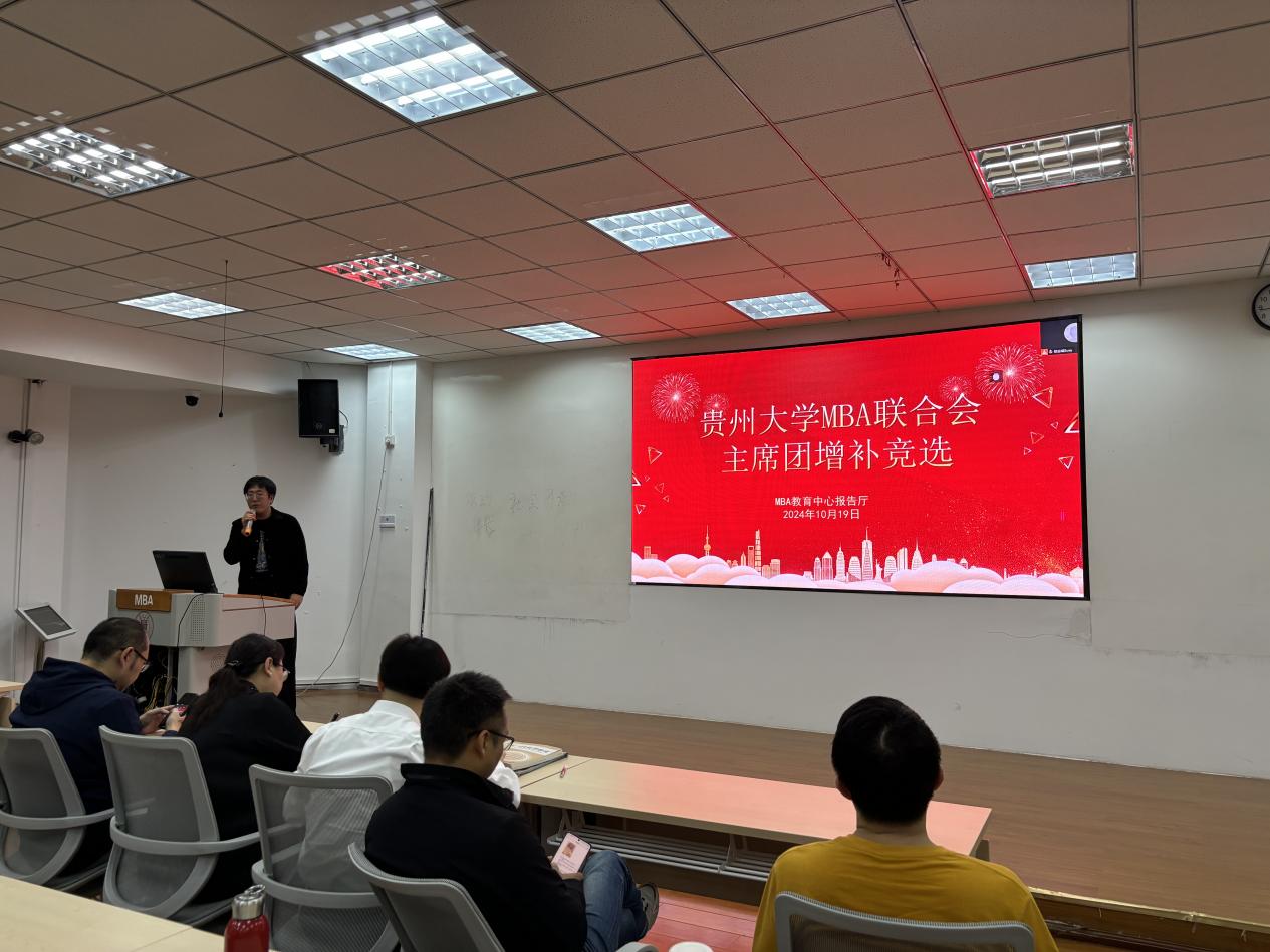 2024年10月19日下午,leyuMBA教育中心在MBA报告厅举行了“贵州大学MBA联合会主席团增补竞选”。MBA教育中心主任项凯标、副主任何跃勇、办公室主任芮丽华及中心全体工作人员,MBA第十届主席团成员和MBA2023级、2024级14个班级的学生代表共60余人参加了此次大会。